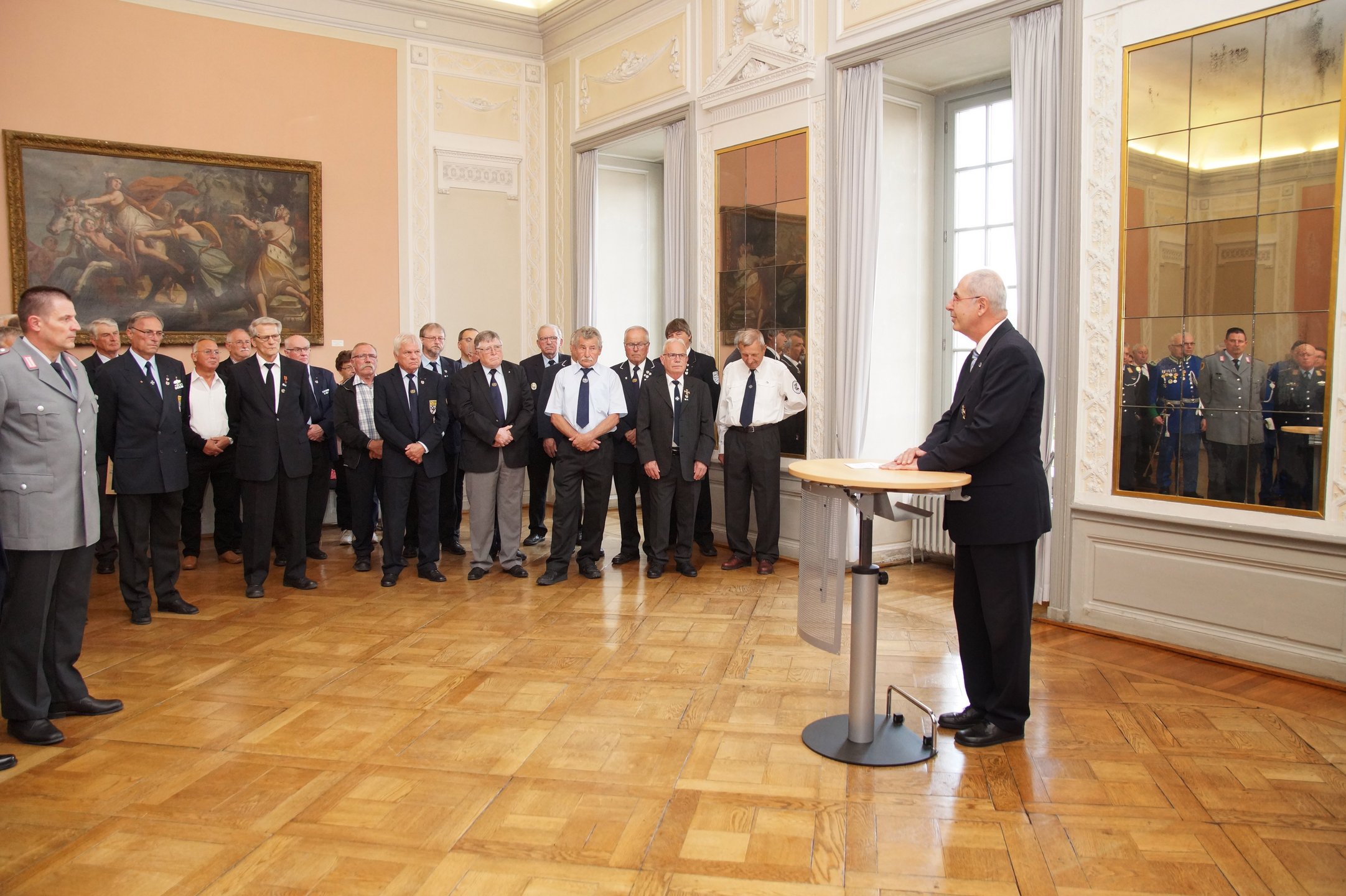 Um die Gräberfürsorge auf eine solide finanzielle Basis zu stellen, sei man auf die Unterstützung der ehrenamtlichen Helfer angewiesen. „Sie stehen heute stellvertretend für alle, die sich in Mittelfranken in besonders vorbildlicher Art und Weise ehrenamtlich in den Dienst der Kriegsgräberfürsorge stellen und sich vor Ort in den Gemeinden engagieren“ wandte er sich an die Gäste des Empfangs.