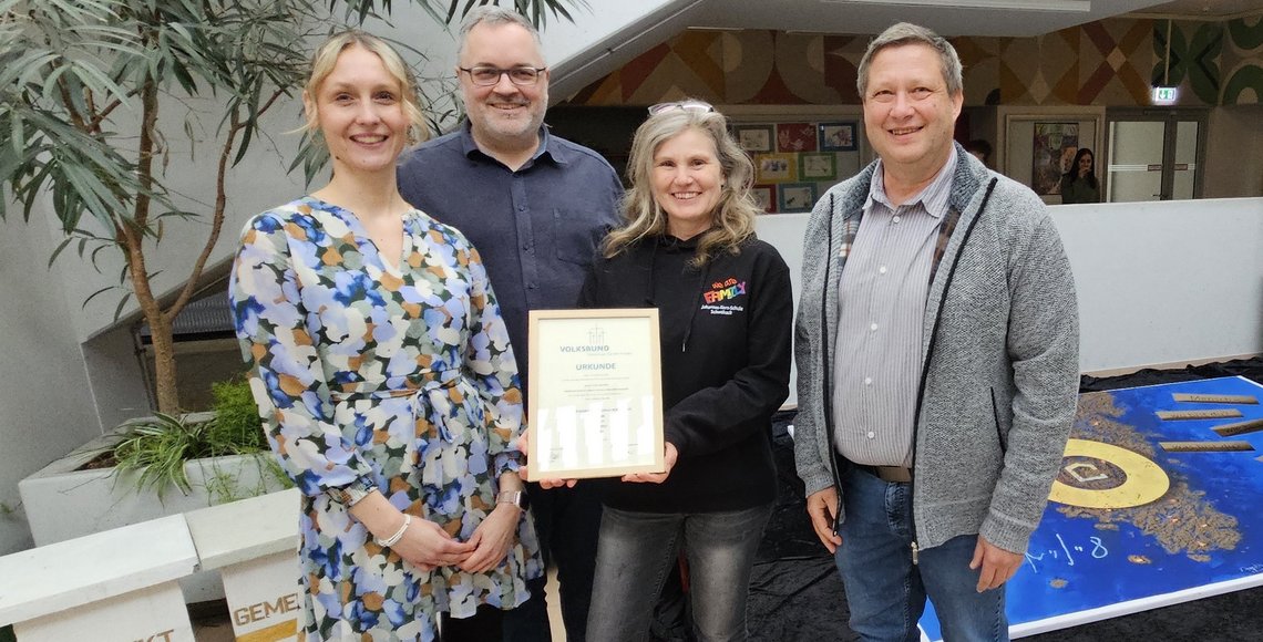 Bezirksgeschäftsführer Dirk Mewes bedankte sich bei Martin Krämer, Rektor der Johannes-Kern-Mittelschule Mittelschule, für die eingereichte Arbeit und übergab eine Urkunde und das Preisgeld von 150 Euro an die Projektgruppe.